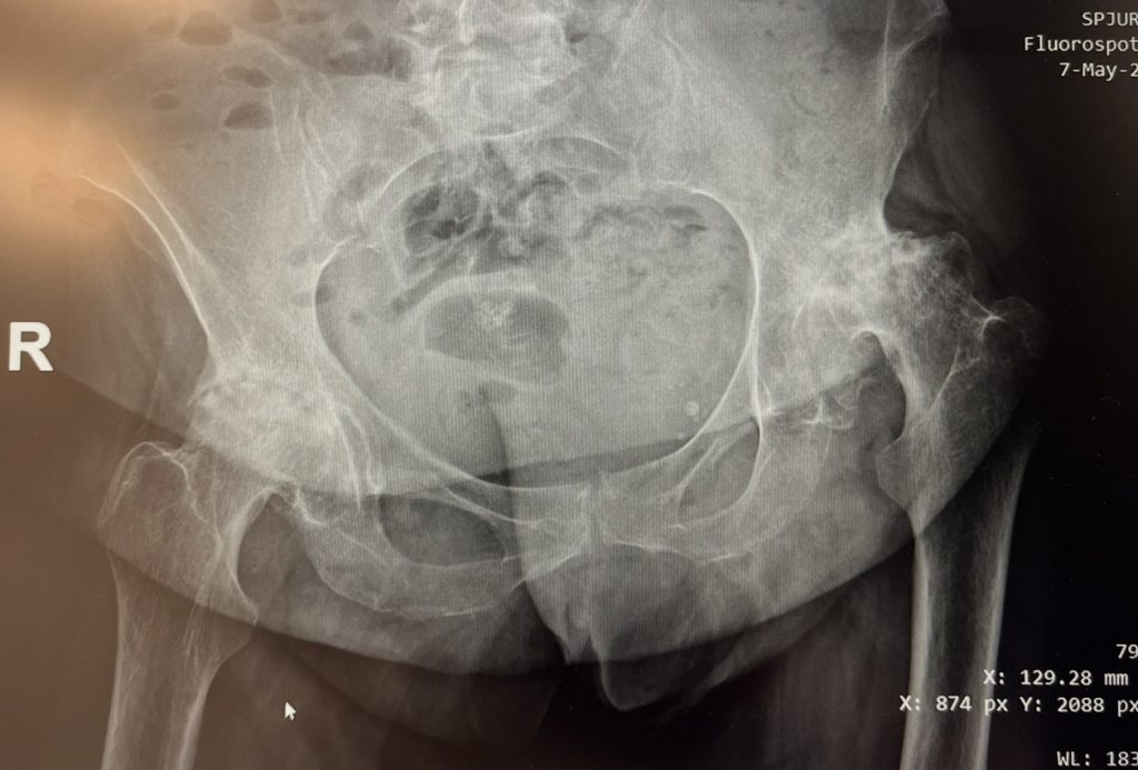 După o evaluare atentă și planificare chirurgicală individualizată, am decis efectuarea unei artroplastii totale de șold bilateral, în doi timpi operatori, la un interval de aproximativ două luni între intervenții.